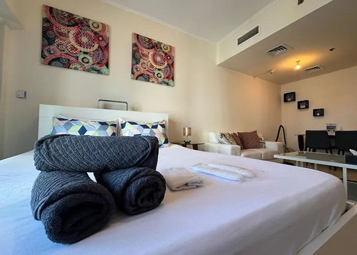Located 32 km from Business Bay railway station, the 50 m² Click Stay - Jlt - Studio & Balcony Lakes View Entire Apartment -Ra Dubai is only a 6-minute walk from the Jumeirah Lake Towers. Situated 2.3 km from American University in Dubai, this 1-bedroom apartment offers a rooftop fitness centre, a hot tub and a sauna.